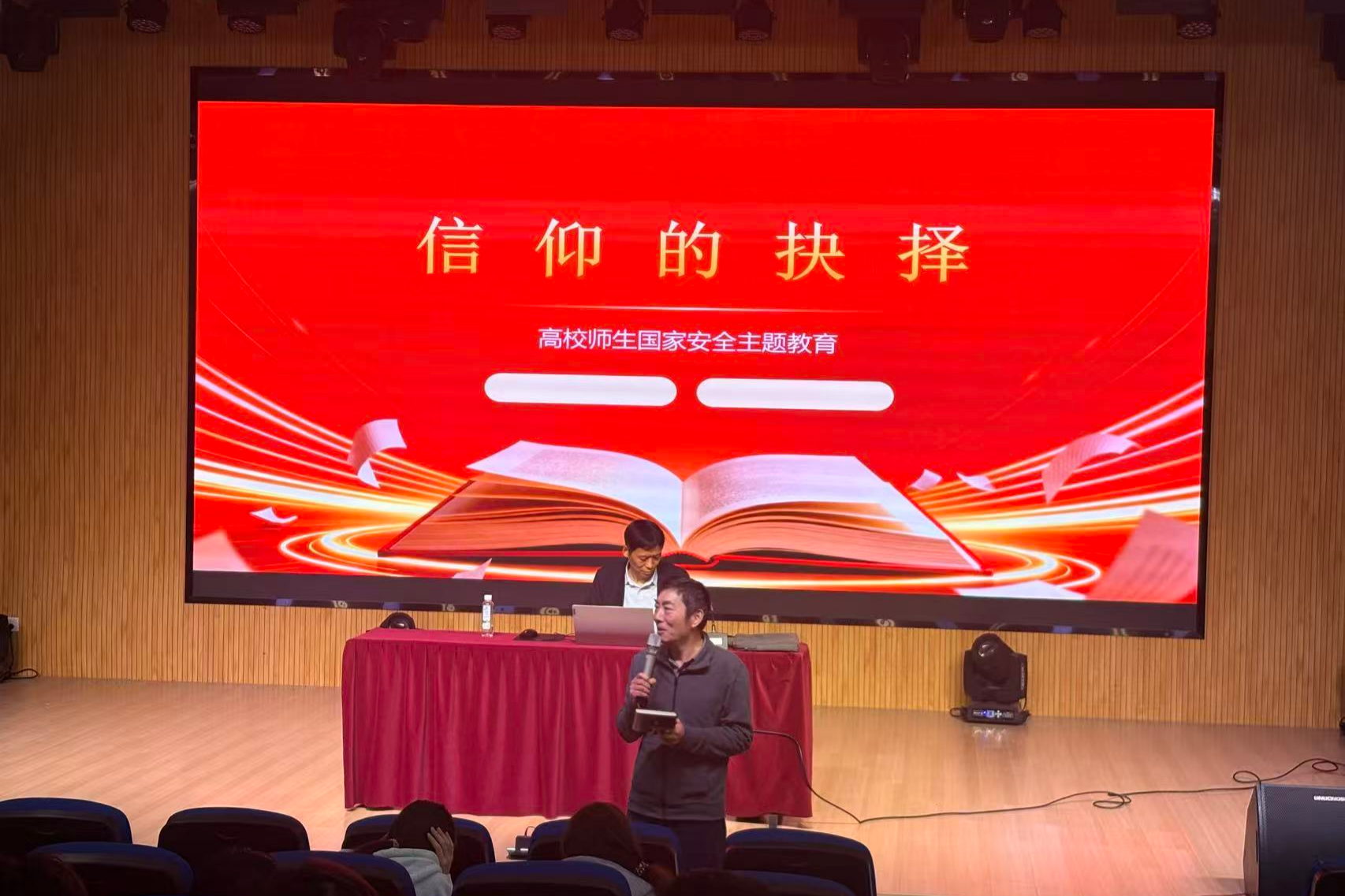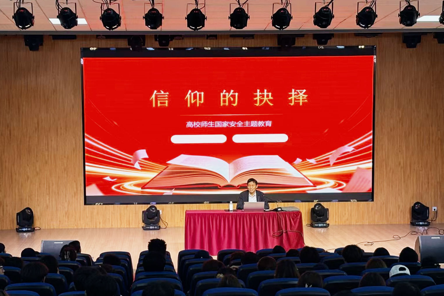 日前,湖州市公安局网络安全保卫支队政委笪猛霄受邀到校,作题为“信仰的抉择”的专题讲座。他结合当前国际国内形势,从多个维度系统讲解国家安全的重要性和现实意义,引导师生树立正确的国家安全观。讲座结束后,校党委副书记莫骄强调,国家安全是安邦定国的重要基石,全体师生要时刻保持警惕,增强防范意识,共同守护校园与社会稳定。